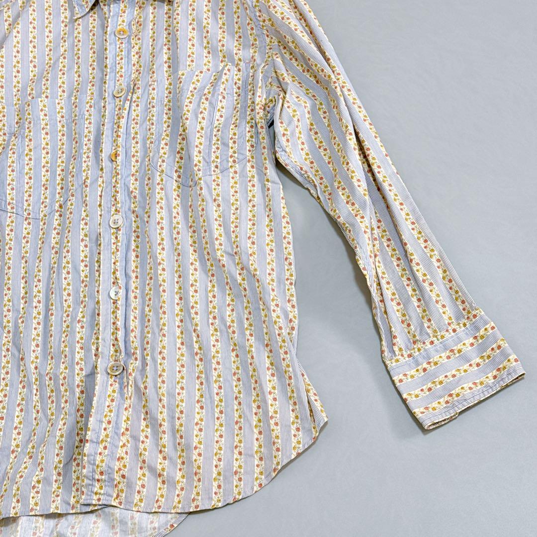 ポールスミスならではの遊び心が詰まった、希少なデザインの花柄ストライプ長袖シャツです。