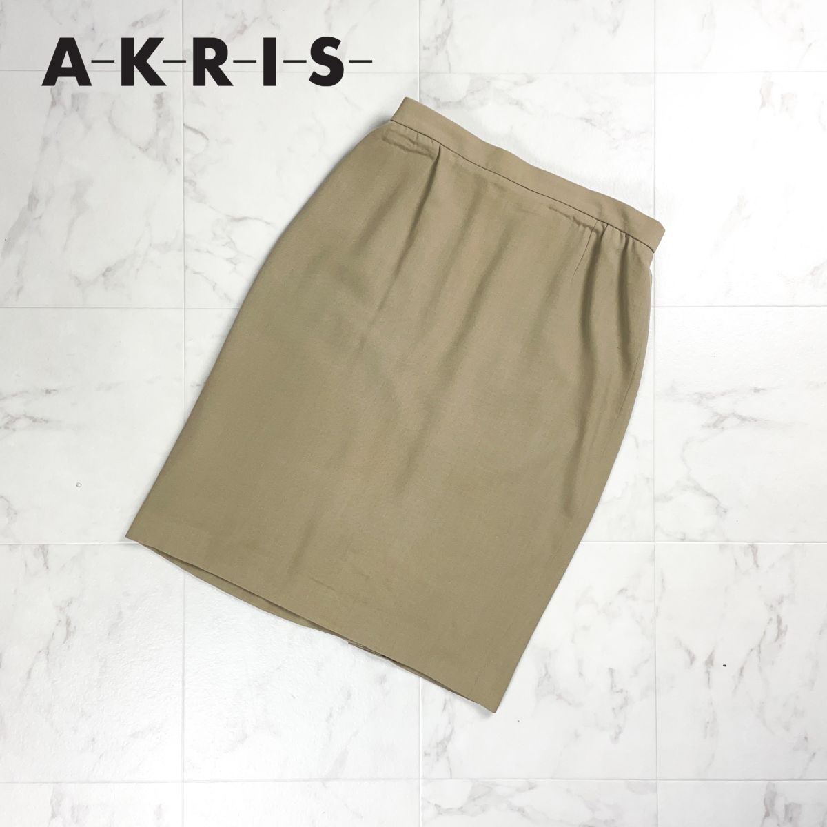 美品 AKRIS アクリス 大きいサイズ ウールタイトスカート 裏地付 膝丈 ベージュ サイズ42*ZC485