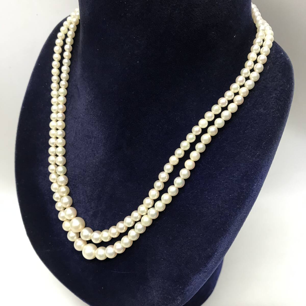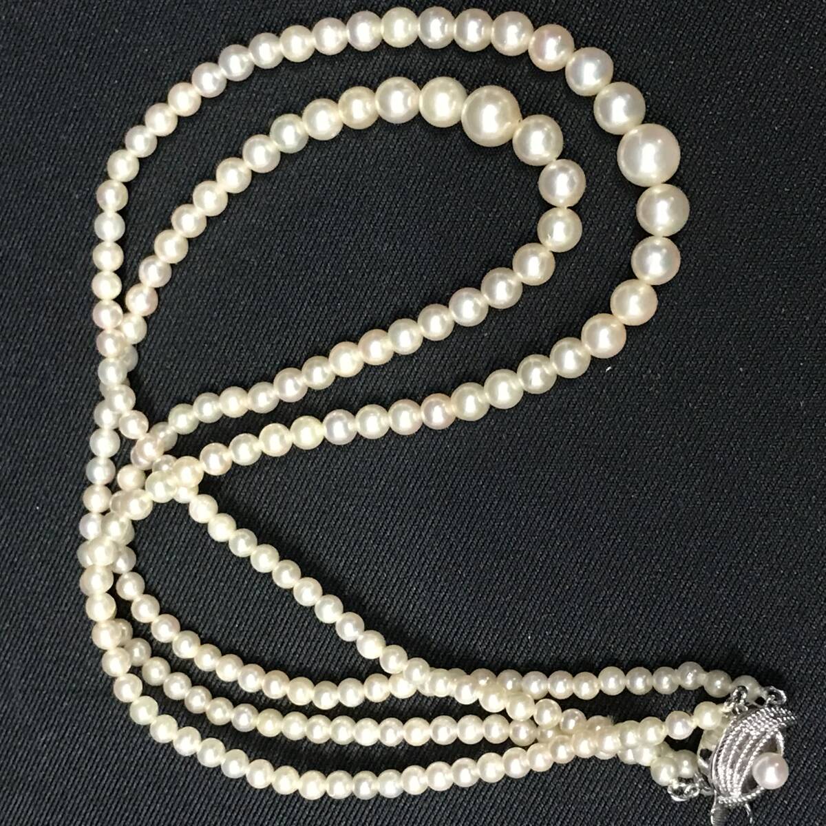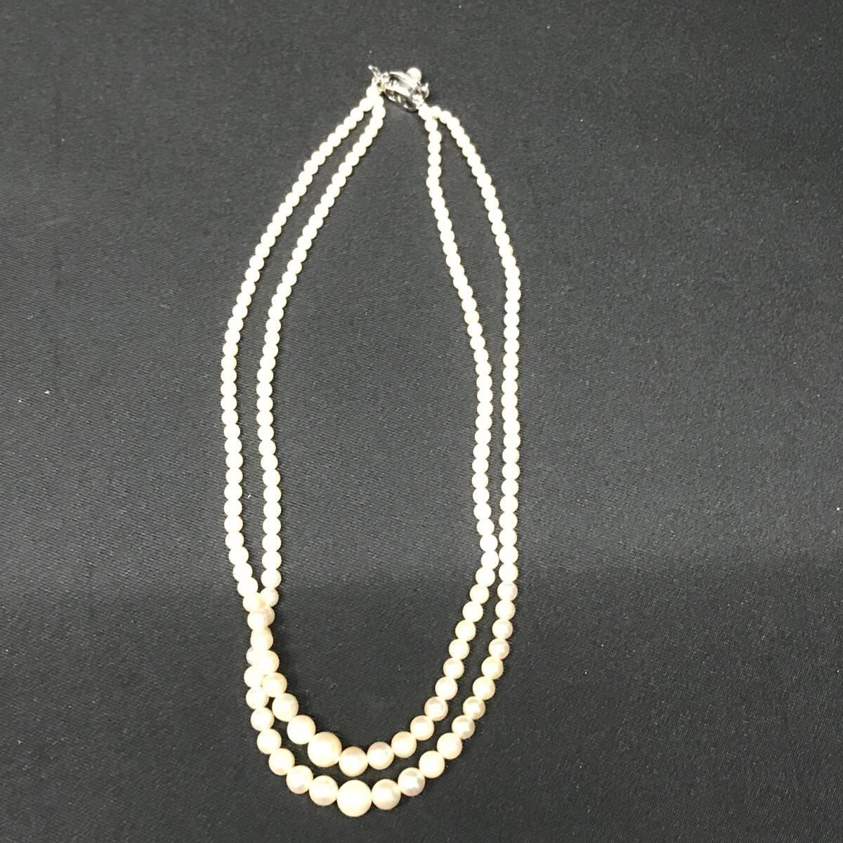 【美品】ベビーパール ネックレス 3.5~8mm 2連 silver刻印金具 ネックレス