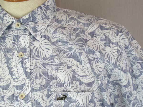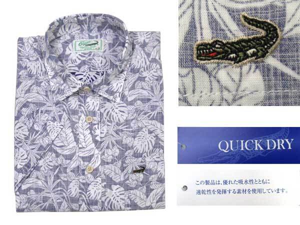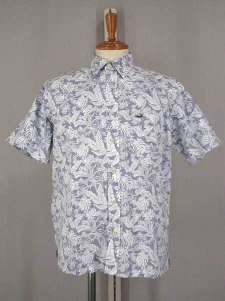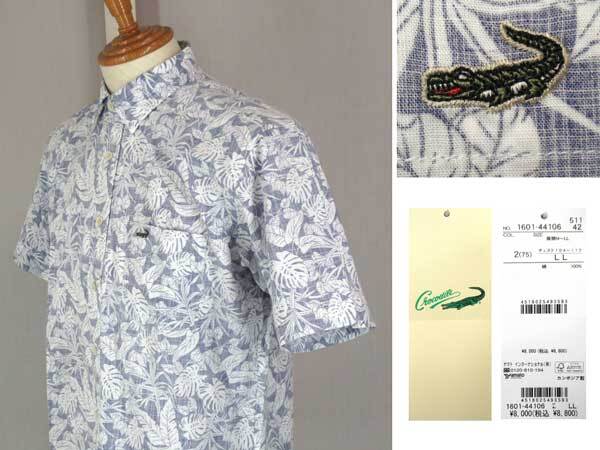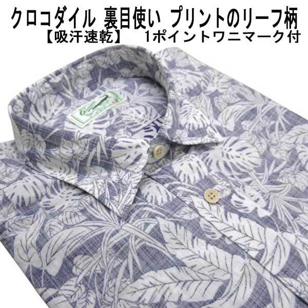 アイテム | 半袖・綿 1ポイントクロコダイルマーク・裏目使い プリントリーフ柄 シャツ 1601-44106-2 |