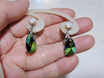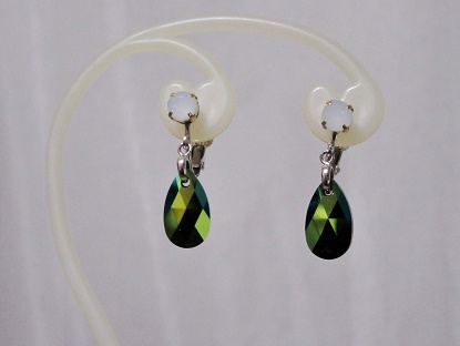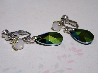 サイズ | サイズ:★雫のモチーフの大きさは、16×9ミリです。 スカラベグリーン スワロフスキー 1石の大きさは、16×9ミリミリです。 ★アクリルパーツの ホワイトオパールの大きさは、6ミリです。 |