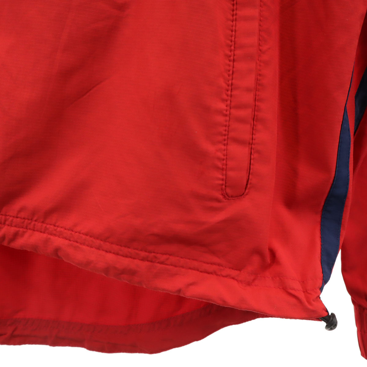 詳細 | 襟周りにフードが収納されています。後身頃に小さな糸引きが点々とあります。両袖口のゴムに伸びがあります。破れ等の目立ったダメージはございませんが、古着にご理解の上ご購入をお願い致します。 |
