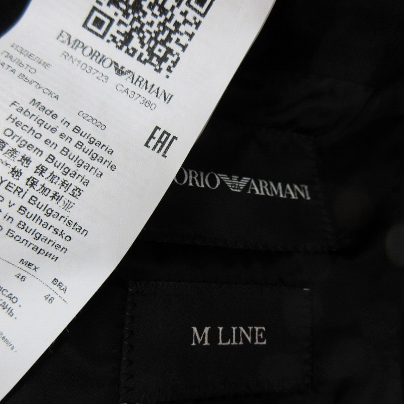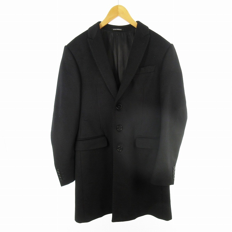 未使用品 エンポリオアルマーニ EMPORIO ARMANI カシミヤ100% チェスターコート ロング 黒 ブラック 無地 M LINE 46