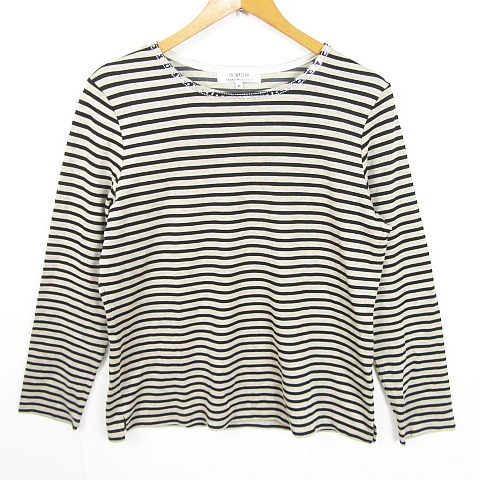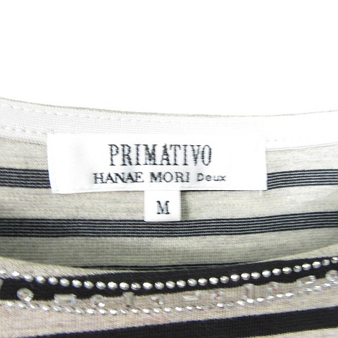 ハナエモリ HANAE MORI Deux プリマティーボ PRIMATIVO カットソー Tシャツ 長袖 ストレッチ レーヨン M ベージュ ブラック ラインストーン kz11265 レディース