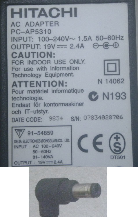 HITACHI PC-AP5310 19V2.4A ( 5.5*2.1■62-01