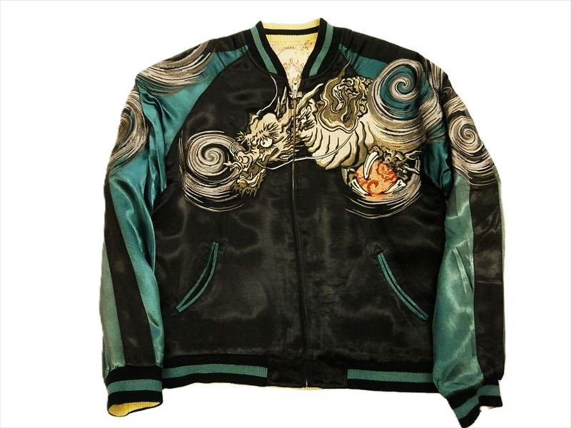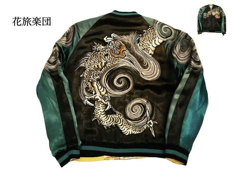 | 【商品名】 | 花旅楽団 スクリプト スカジャン SKJ-175 和柄 "渦龍" エイジング リバーシブル サテンスカジャン Mサイズ アメカジ スーベニアブルゾン 刺繍ジャケット 和柄ブルゾン ジャンバー |