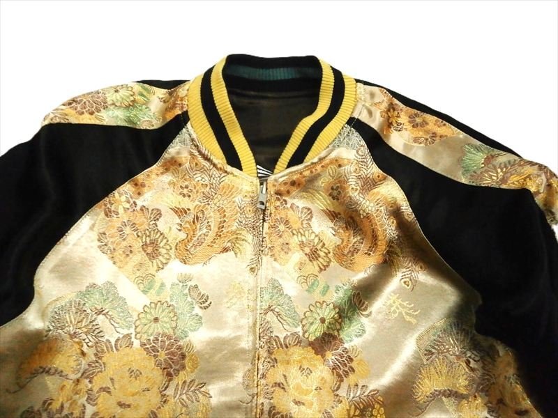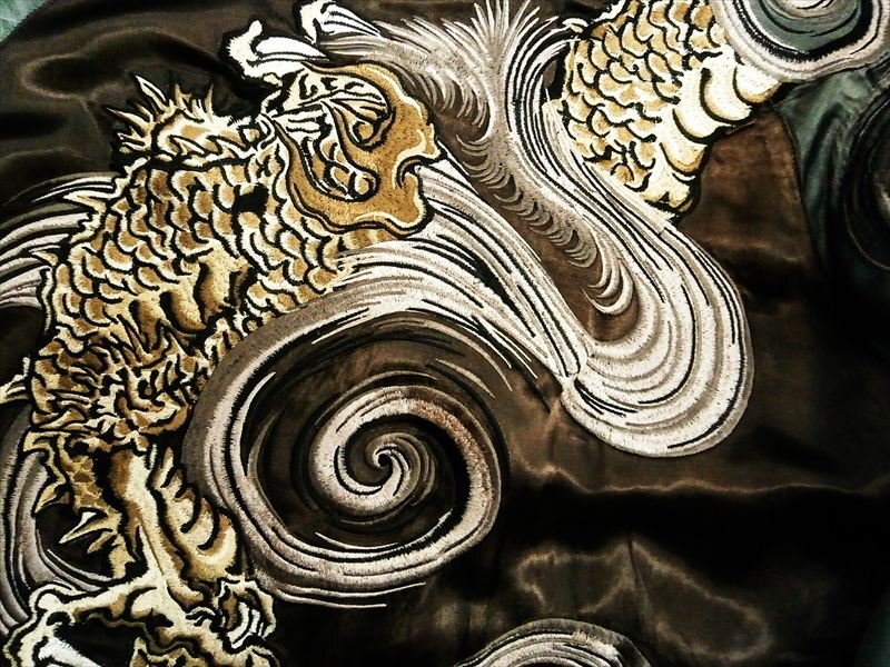 その『スクリプトSCRIPT花旅楽団』から、サテン×サテン リバーシブルスカジャンのご紹介です。柄は『渦龍』です。 ポリエステルやナイロンでは表現できないレーヨン独特の重厚な光沢が実現されています。 表面には龍と渦が緻密な刺繍でデザインされています。両袖にも渦が刺繍されています。袖とバックはエイジング加工が施され、経年変化後が楽しめます。 裏面は、鳳凰や菊などを刺繍されたサテン生地を使用しています。両面が違う雰囲気なので、様々なシーンで活躍しそうですね! ※サテン生地独特の織傷などがある場合がございますが、生地の特性ですのでご理解下さいませ 。 |
