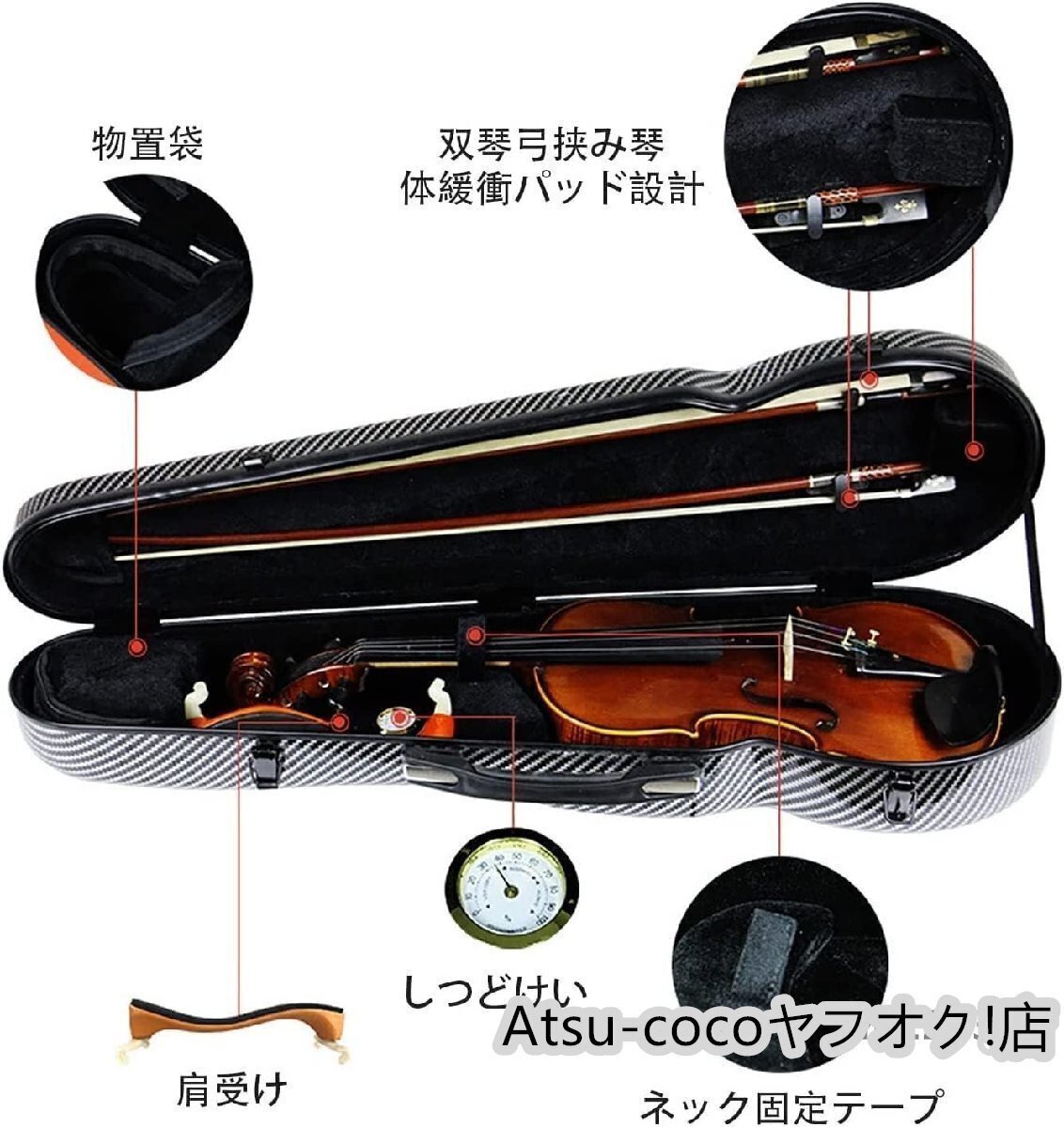バイオリンケース 炭素繊維4/4 軽量 機内持ち込み可 フルサイズ バイオリンケース 湿度計 ショルダー 防水