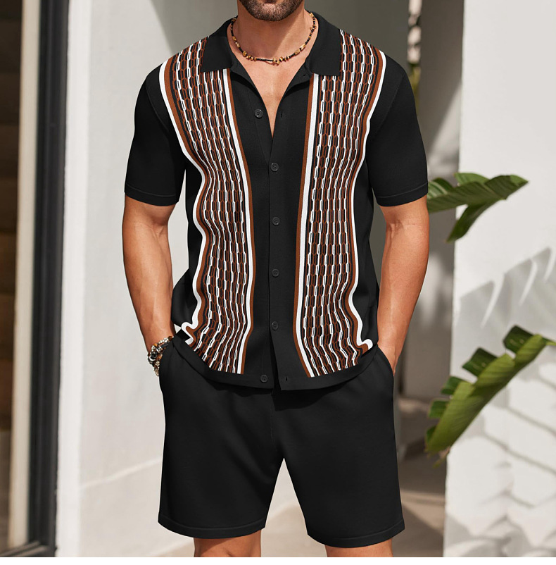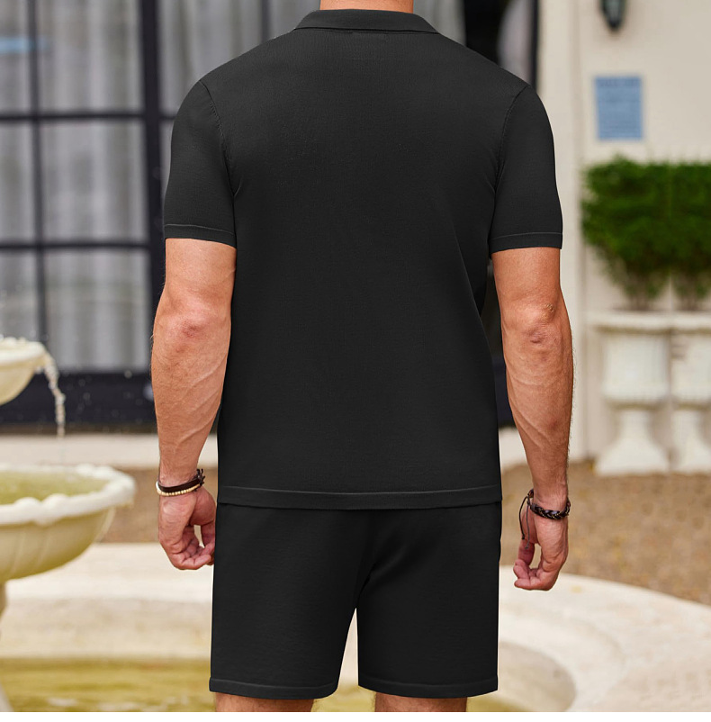 人気新品メンズ 半袖シャツ スウェット ジャージ サマーニット セットアップ 上下セット ハーフパンツ 夏 ショットパンツ 短パン運動着 黒