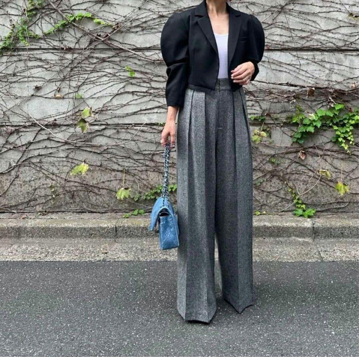 インナーにはシンプルにカットソーやブラウス、タートルなどを合わせて着用可能。ブラックは特に万能にお使いいただけます。