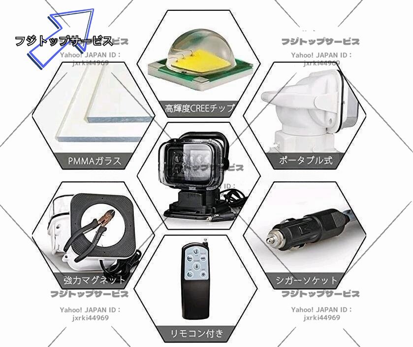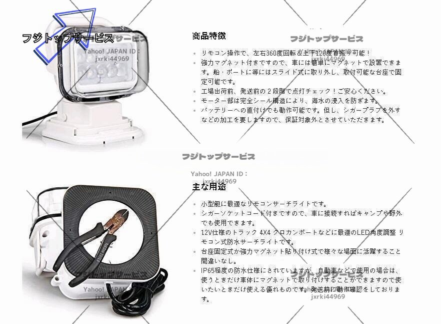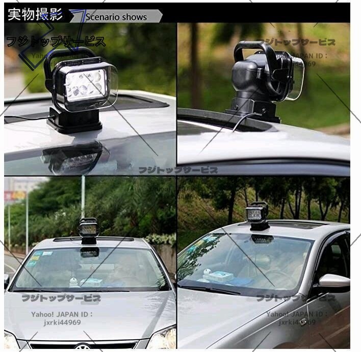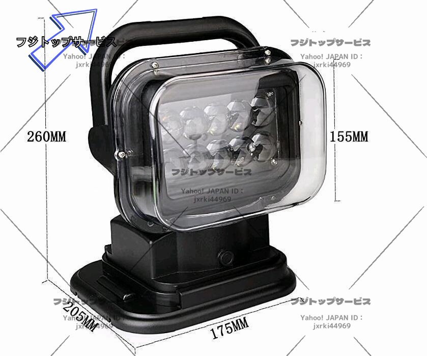 12V仕様のトラック 4X4 クロカンボートなどに最適のLED角度調整 リモコン式防水サーチライトです。