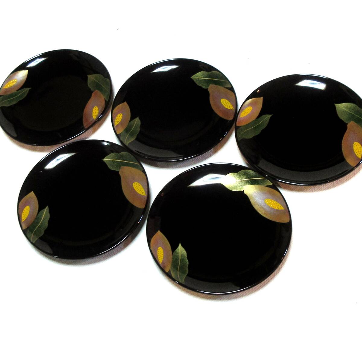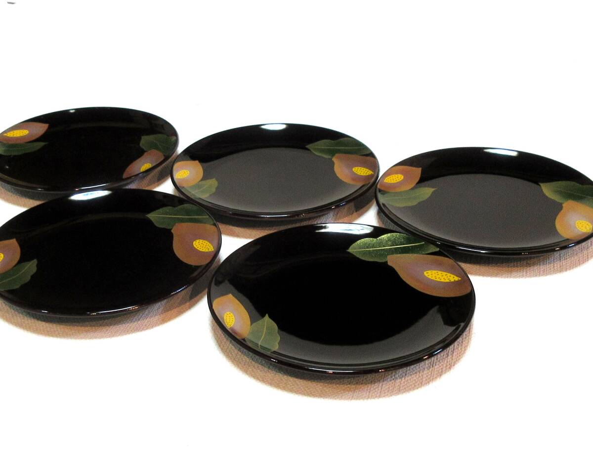 ★艶やかな蒔絵の美♪★会津塗 銘々皿 カラー蒔絵 5枚組★手描蒔絵★送料無料 現品限り | |||