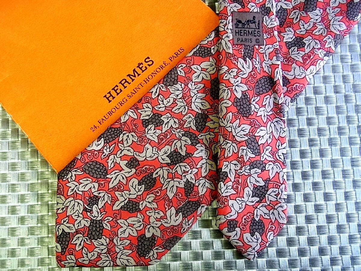 ♪37171D♪状態並品【ブドウ 果物 フルーツ 柄】エルメス【HERMES】ネクタイ