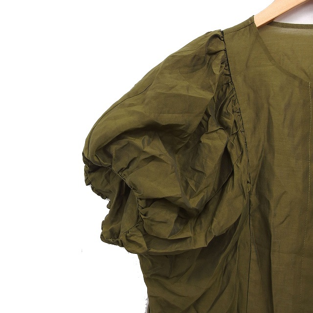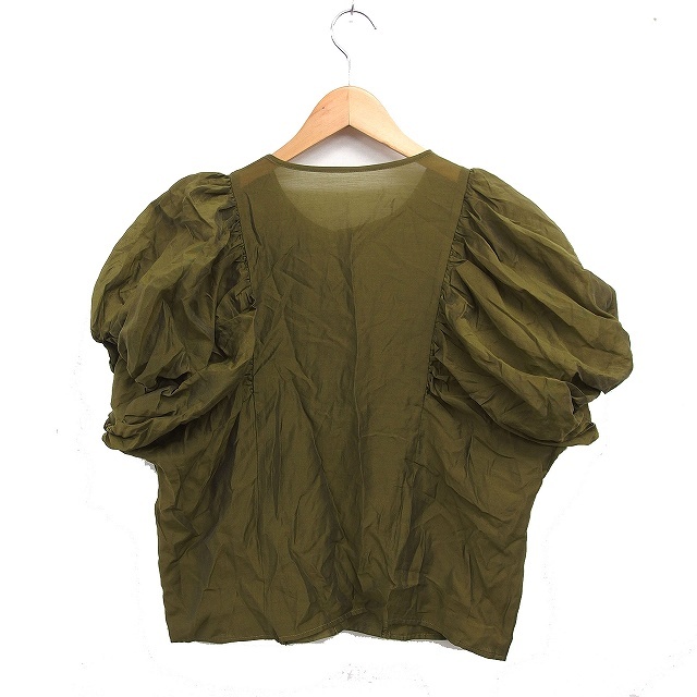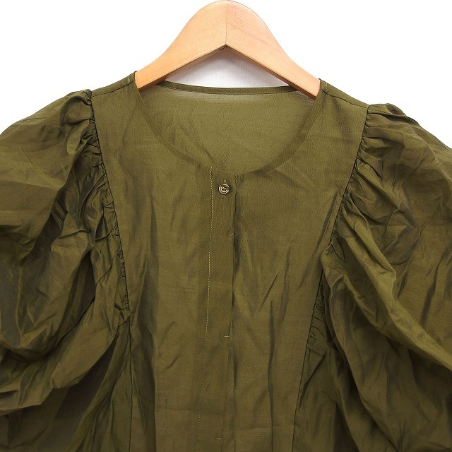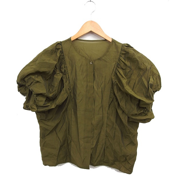 テチチ Te chichi ギャザー バルーンスリーブ シャツ ブラウス 丸首 無地 F カーキ /FT21 レディース
