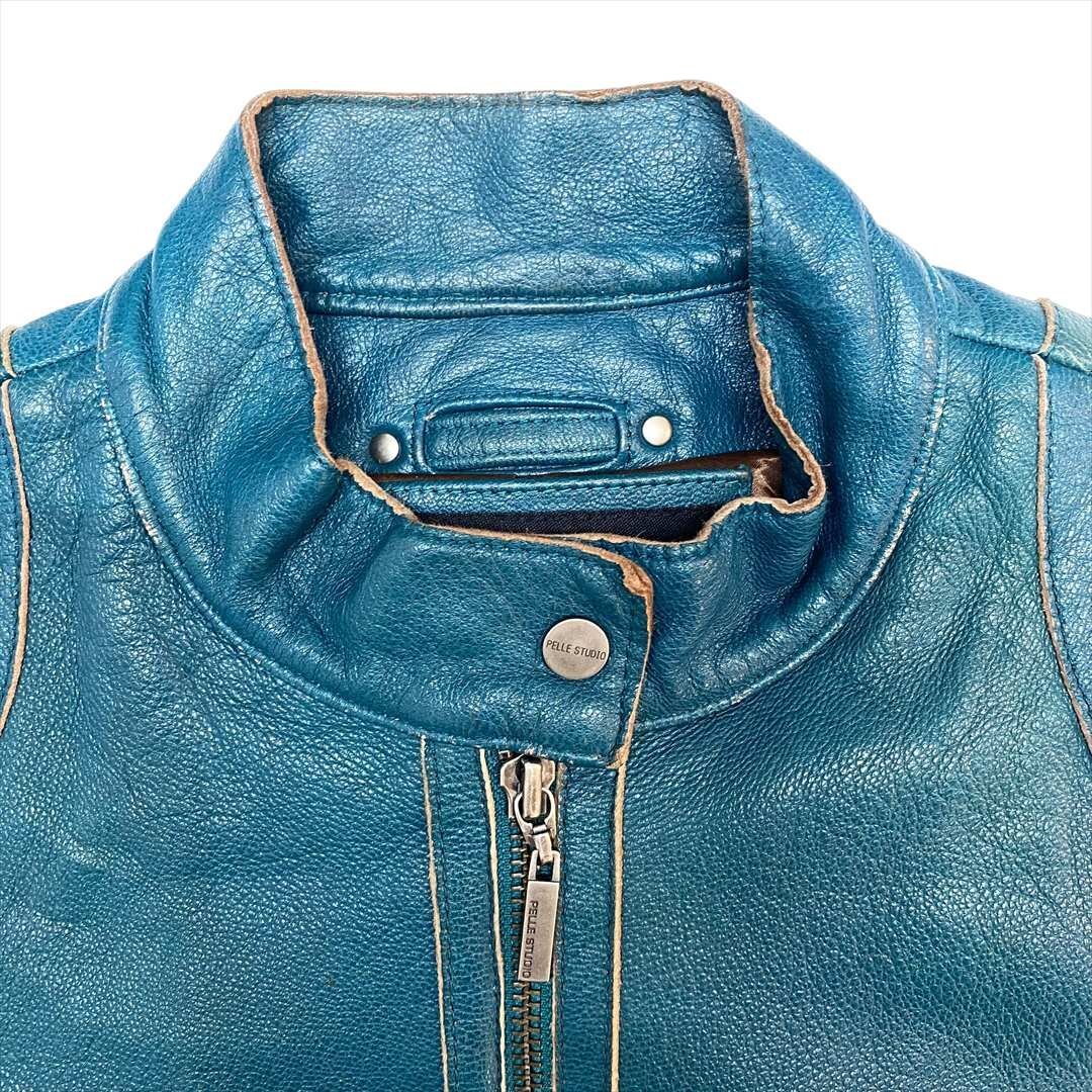 Wilsons Leather 本革 シングル レザー ライダース ジャケット ブルー 古着 レディース M Vintage ヴィンテージ ビンテージ ktus0300