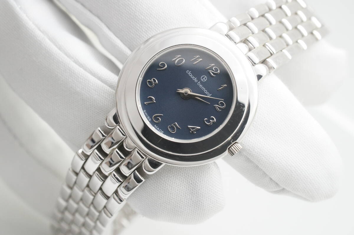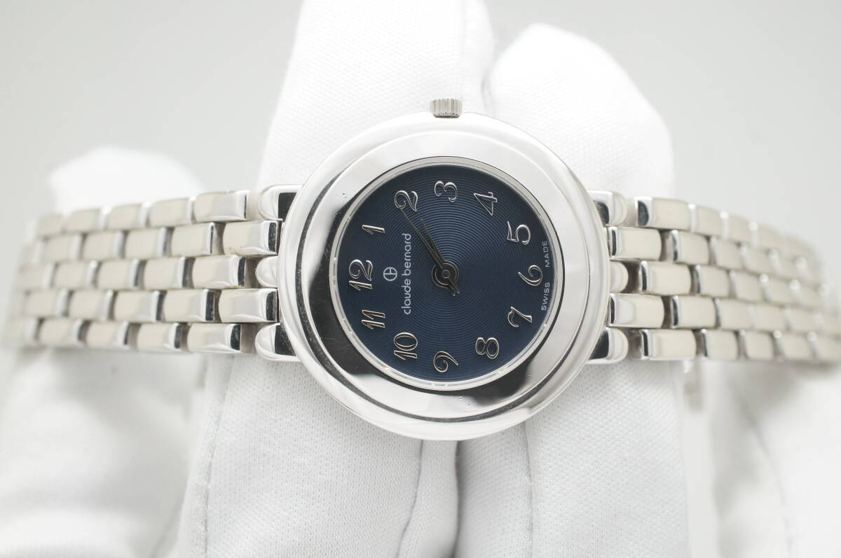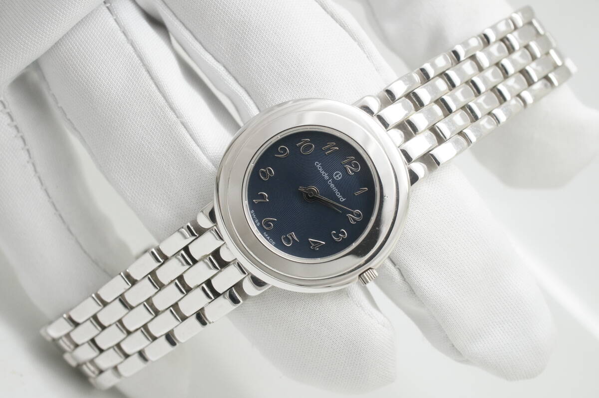 C4●作動良好 美品 cloude bernard クロード ベルナール スイス製 紺文字盤 レディース腕時計 シルバー お洒落 クォーツ