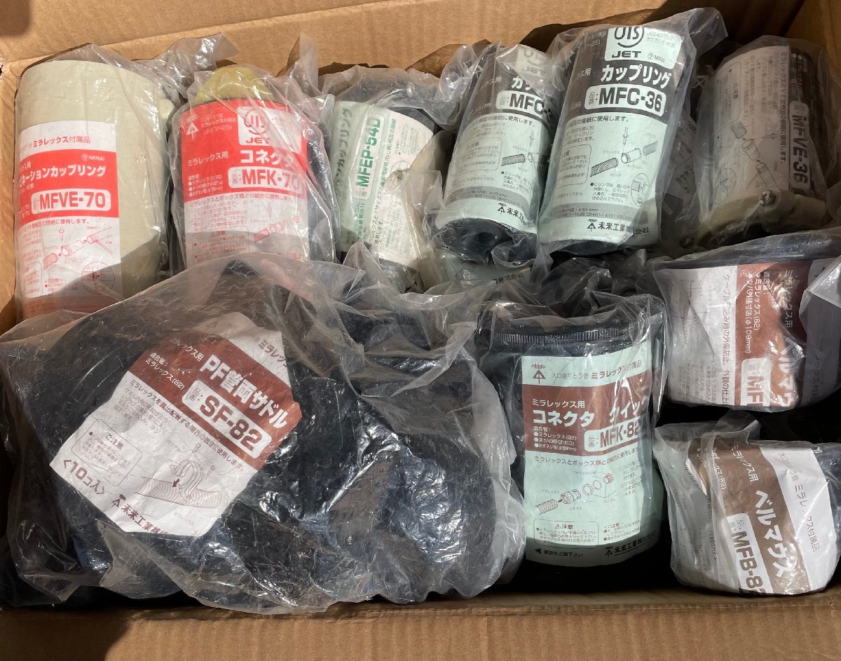 ▼【500円オークション!】25個 未来工業 ミラレックス用 カップリング・サドル・コネクタ・他 ( MFC-70A / MFEP-54D / SF-82 / MFB-82 ..