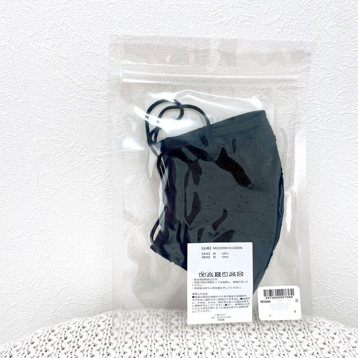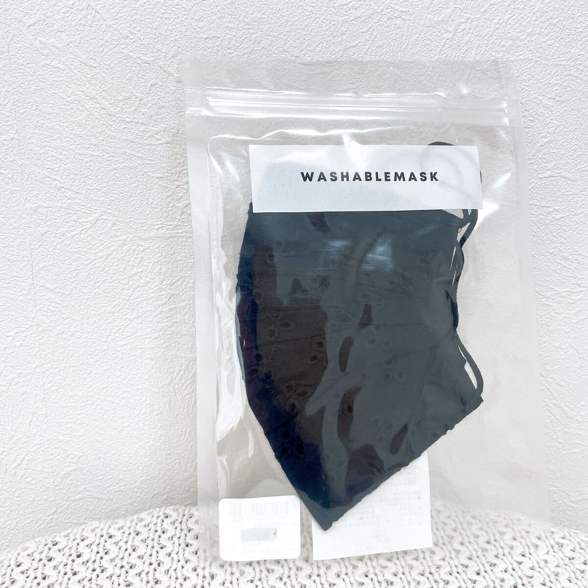 ★新品★ウィゴー ウォッシャブルマスクWEGOマスク布マスク コットンレース黒ブラック3Dプリーツマスク綿100%コットン アクセサリー