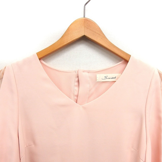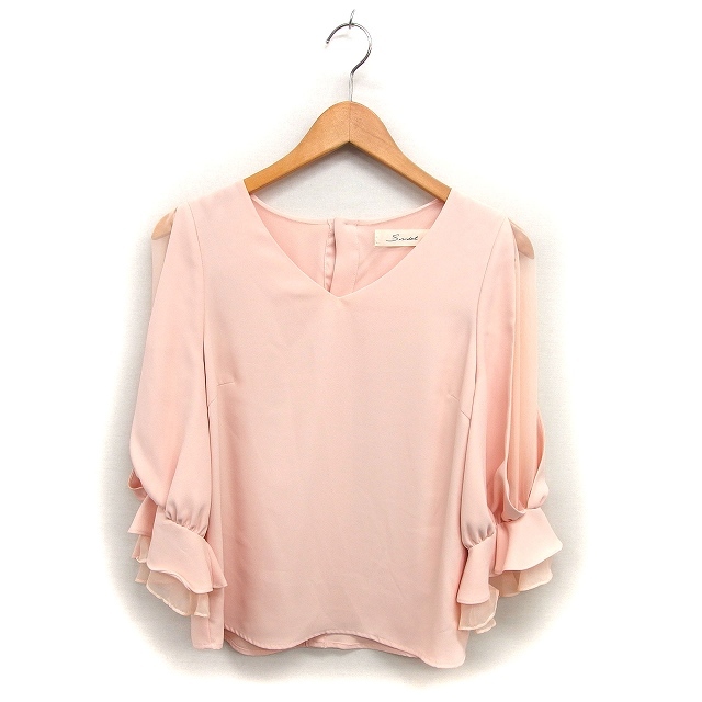 スナイデル SNIDEL Vネック ブラウス シフォン 切替 シアー スナップボタン 七分袖 F ピンクベージュ /NT13 レディース