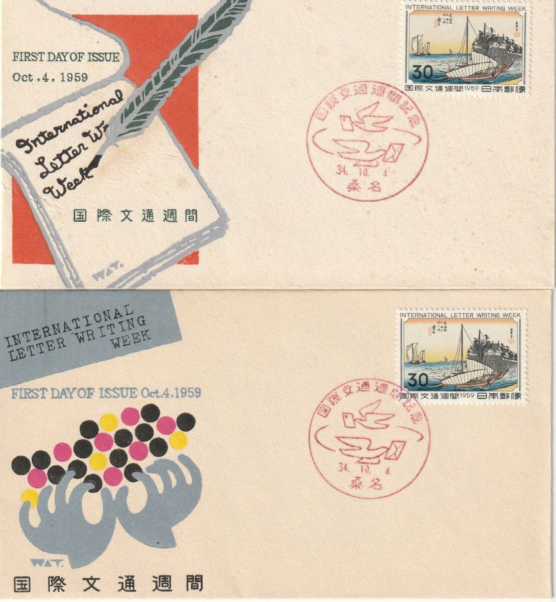 FDC 1959年  国際文通週間  桑名  30円  2通   中村浪静堂