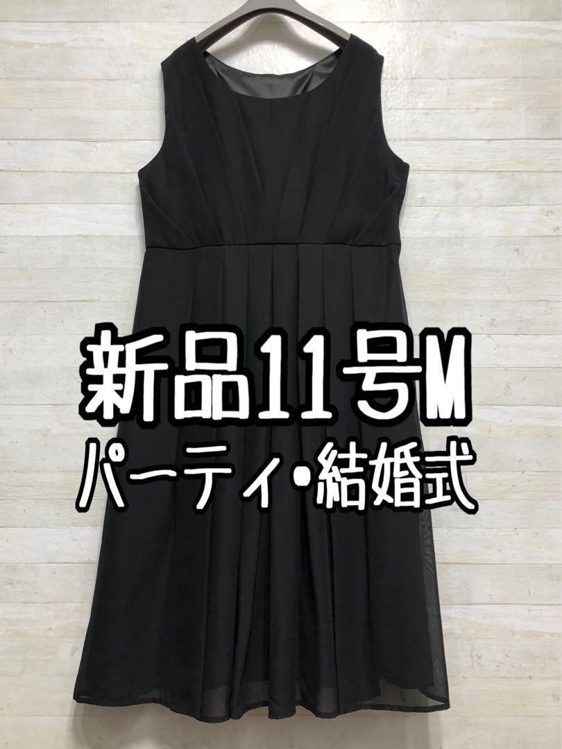 新品☆11号M♪黒系シフォン素材のパーティワンピース♪シックな印象〇D573