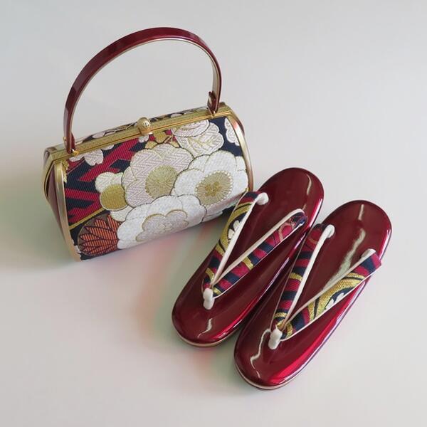 豪華な正絹の帯地を使った高級感あふれるバッグと草履