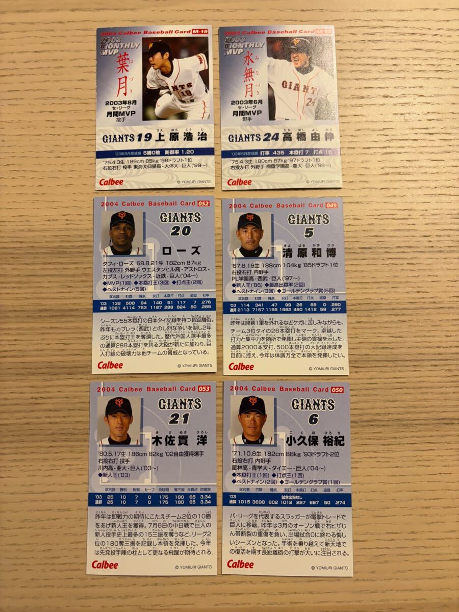 清原 高橋 ローズ 小久保 上原 木佐貫 2004年 読売ジャイアンツ 巨人 プロ野球チップス カルビー 検 BBM epoch 1st