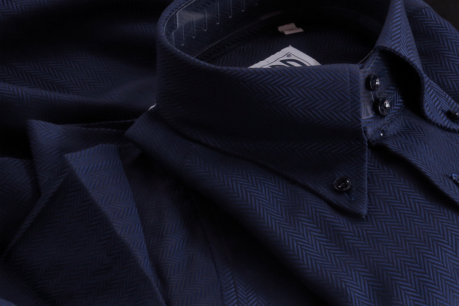 ★イタリアシャツ白DANROMAドゥエボットーニ NEW DOBBY EXTRA JUL 0231_572 HERRIGBONE 色合い深く華紺インクブルー S 38-89