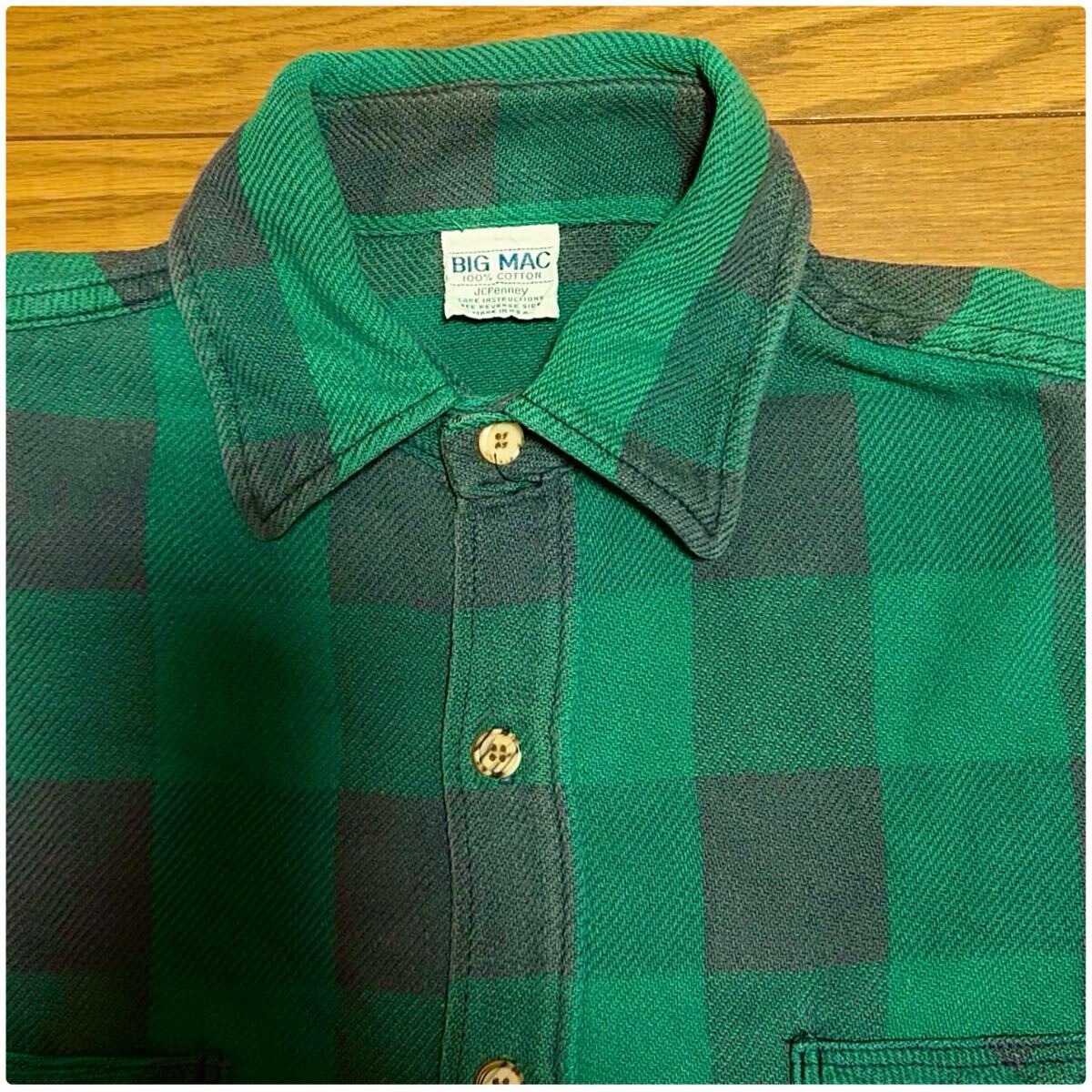 こちらは、『超好配色フェード緑×黒ブロックチェックBIGサイズ 1970’S BIG MAC ビッグマック USA製 ヴィンテージ フェードグリーン×ブラックブロックチェックコットンヘビーネルシャツ』です。