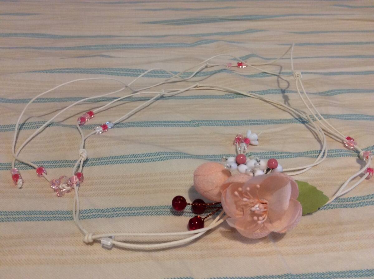 浴衣用の可愛らしい帯締めです。3000円ほどで京都で購入しました。全くの未使用、大切に保管しておりましたのでとても綺麗な状態です。全長約96㎝、お花は6×3㎝ほど、ふんわり優しい桜(梅かもしれません)のようなピンクのお花がとても愛らしく可愛らしいデザインです。紐もビーズなど洗練された凝ったおつくりです。