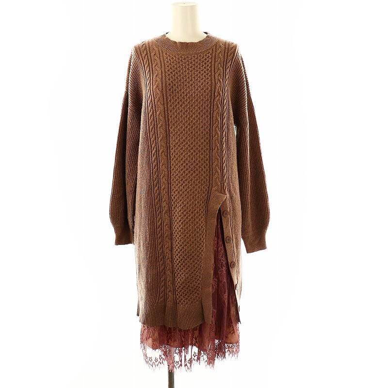 ジルバイジルスチュアート JILL by JILLSTUART ロングニットワンピース スカート ミモレ丈 長袖 F ピンク 紫 パープル /YQ ■OS レディース