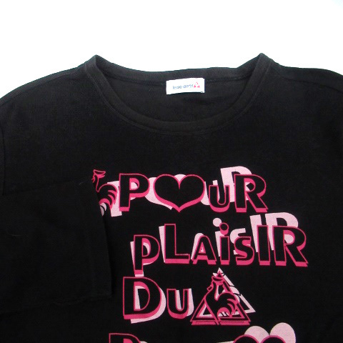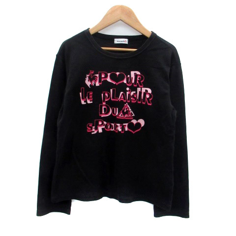 ルコックスポルティフ le coq sportif Tシャツ カットソー ラウンドネック 長袖 プリント O XS黒 ブラック ピンク /HO39 レディース