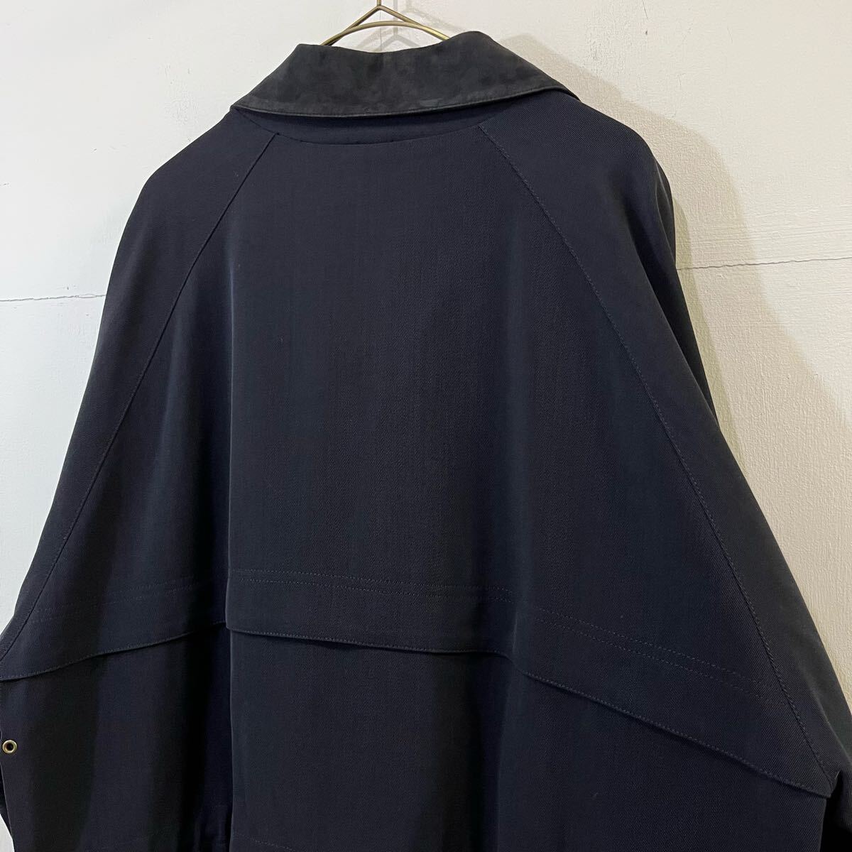 NINA RICCI Monsieur ライトアウター レザー切り替え 防水 防風 比翼ボタン ジップアップ ラグランスリーブ 日本製【送料一律/同梱可能】Uの出品です。