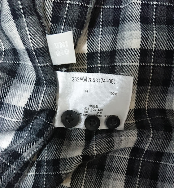 2007年 00s オールド ユニクロ OLD UNIQLO フランネル チェックシャツ ネルシャツ ブラック×ホワイト サイズS ヴィンテージ ビンテージ