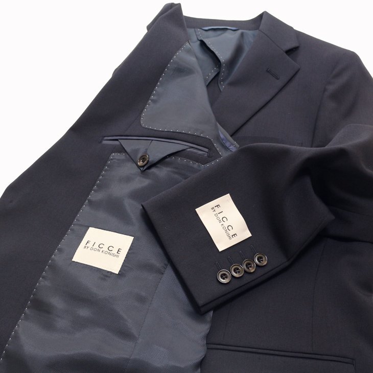 ラペルAMFステッチ(無し)背抜き仕立て・薄肩パット入り・袖口4つボタン 袖口裏額縁仕上・ピンポンステッチ・ボタンX止め・汗止め・チョーシック 生産国:中国製*仕上げプレスは、国内で施しております。 |