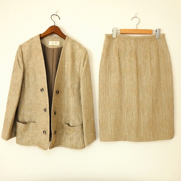 | 実寸サイズ | (トップス)肩幅約 40cm・袖丈約 54cm・着丈約 60cm・胸囲約 52cm×2 (スカート)ウェスト約 38cm×2・スカート丈約 61cm(スリット丈約 19cm) |