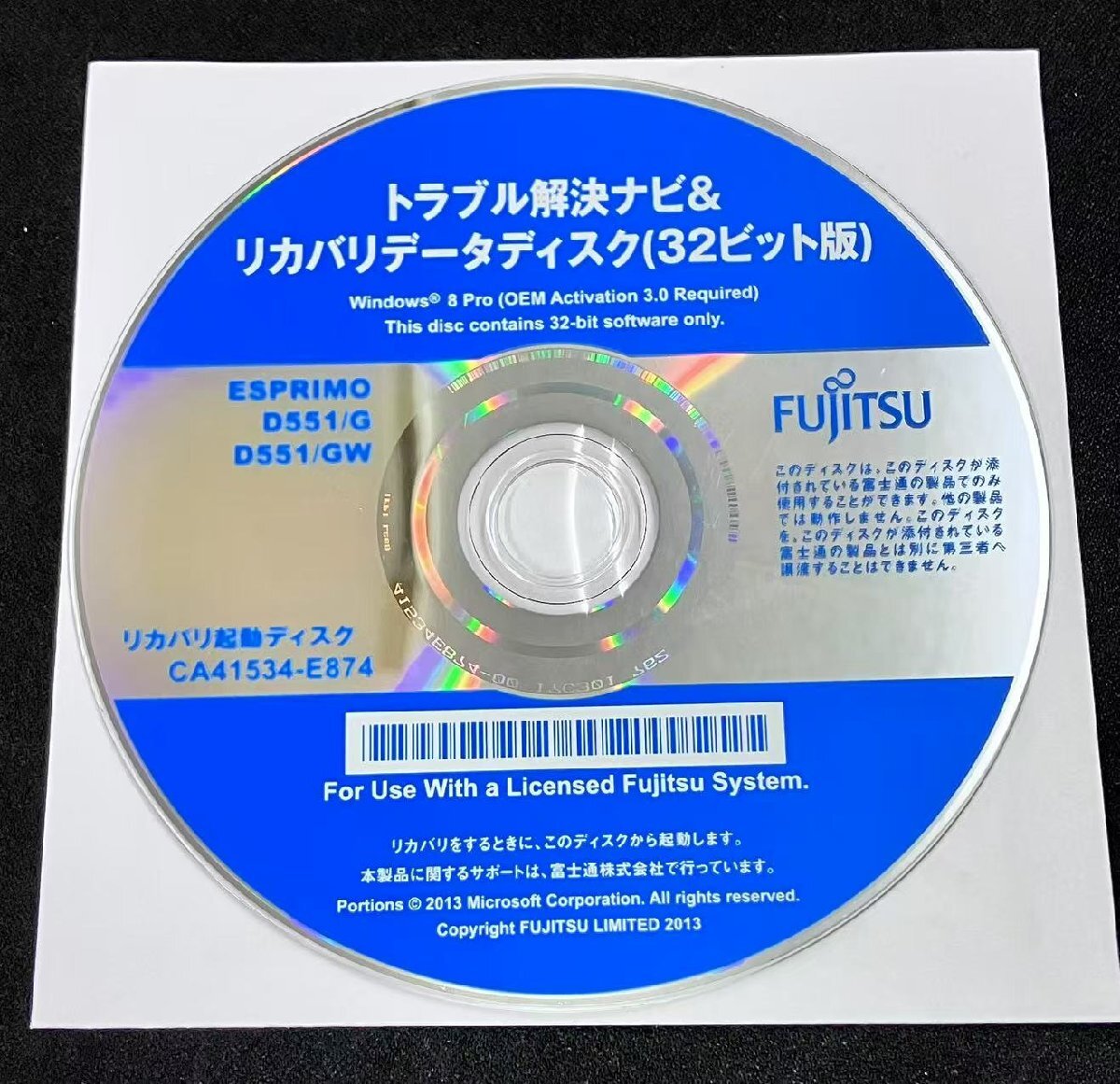 商品名 | FUJITSUトラブル解決ナビ&リカバリーデータディスク Windows 8 Pro (32bit) for D551/G/GW |