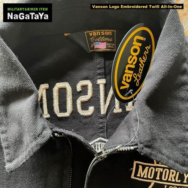 ■ VANSON バンソン NVAO-403NC ロゴ刺繍 ツイル オールインワン ブラック 黒 つなぎ カバーオール ■