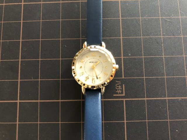 AK317 美品 良デザイン レア MICHEL KLEIN ミッシェルクラン カットガラス ゴールド×シルバー 純正ベルト クオーツ レディース 腕時計