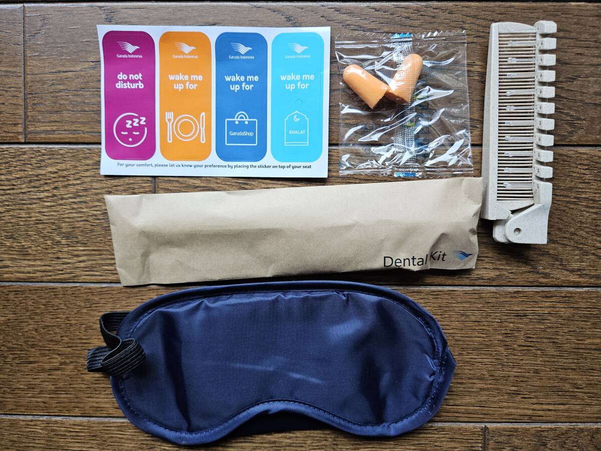 アイマスク、耳栓、コーム、デンタルキット、シール、スリッパ、