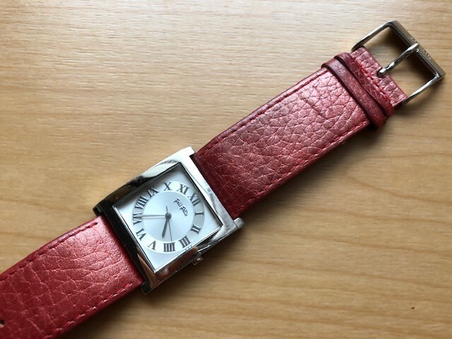 良デザイン FOLLI FOLLIE フォリフォリ スクエア シルバーカラー ロゴ入純正ベルト クオーツ レディース 腕時計