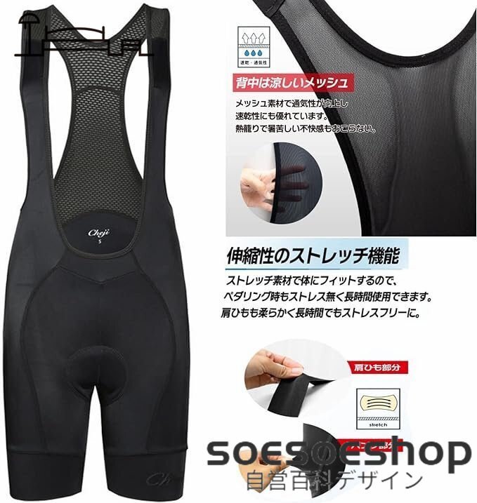 サイクルパンツ ビブショーツ レーサーパンツ 3Dゲルパッド付 自転車 ロードバイク UVカット 吸汗速乾 通気 伸縮性 衝撃吸収 抗菌防臭 春秋