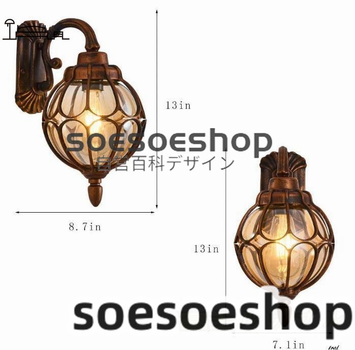 人気美品 褐色 Sサイズ アンティーク風 ポーチライト インテリア アンティーク レトロ おしゃれ 屋外 装飾 外灯 玄関 防水ブラケットライト