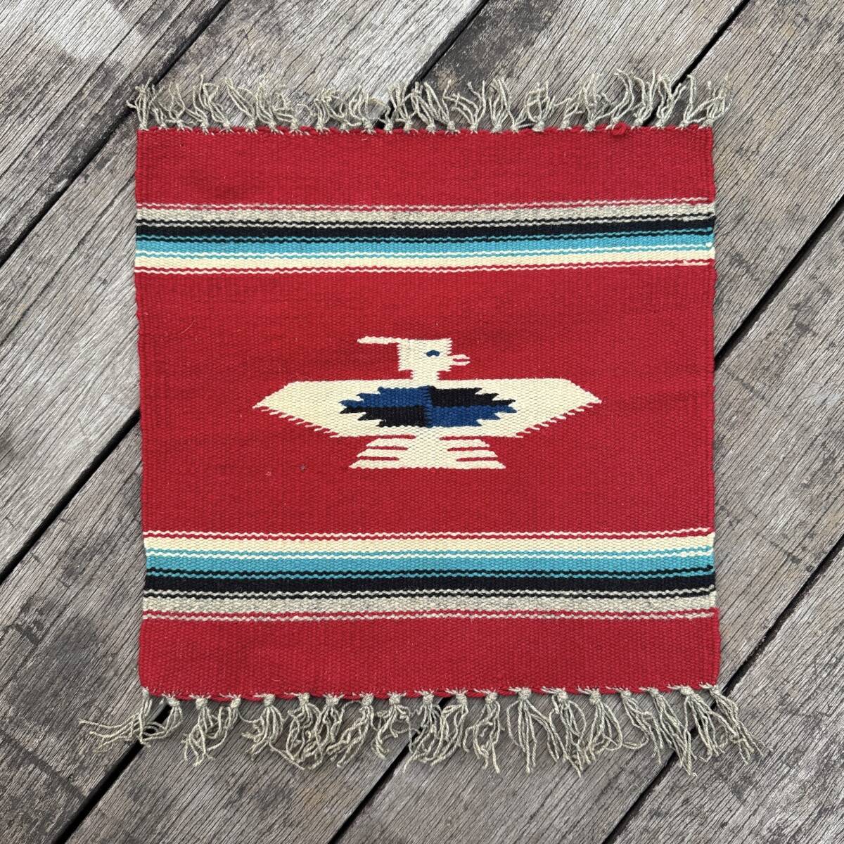 【Vintage】~1970s Small Rug Mat ラグ マット サンダーバード チマヨ ネイティブアメリカン インディアン ヴィンテージ アンティーク D
