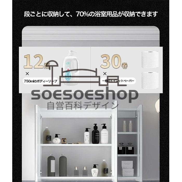 ★多機能ミラーキャビネット:LED鏡、 曇り止め、収納、時間表示