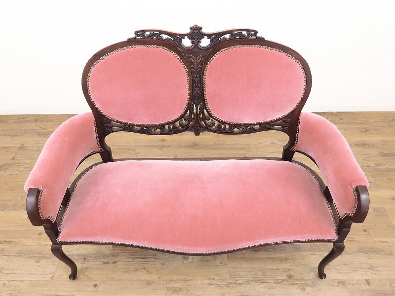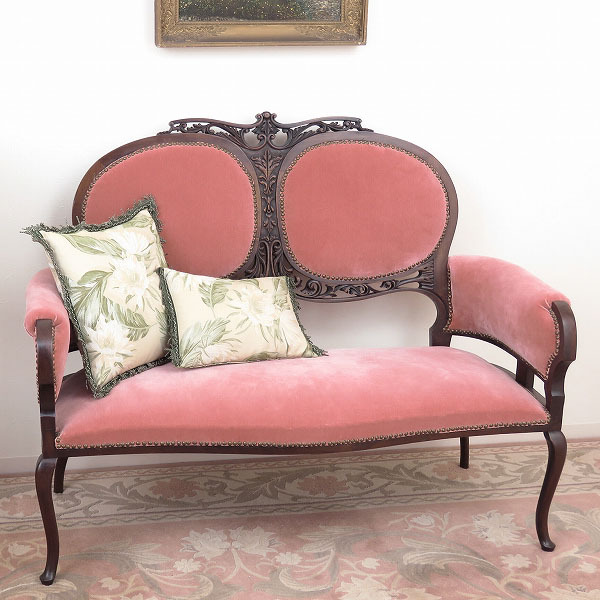 《セール品》ヴィクトリアン様式の繊細なセティ/ソファー/木製椅子/店舗什器/ディスプレイ/インテリア/イギリスのアンティーク家具/A-2346