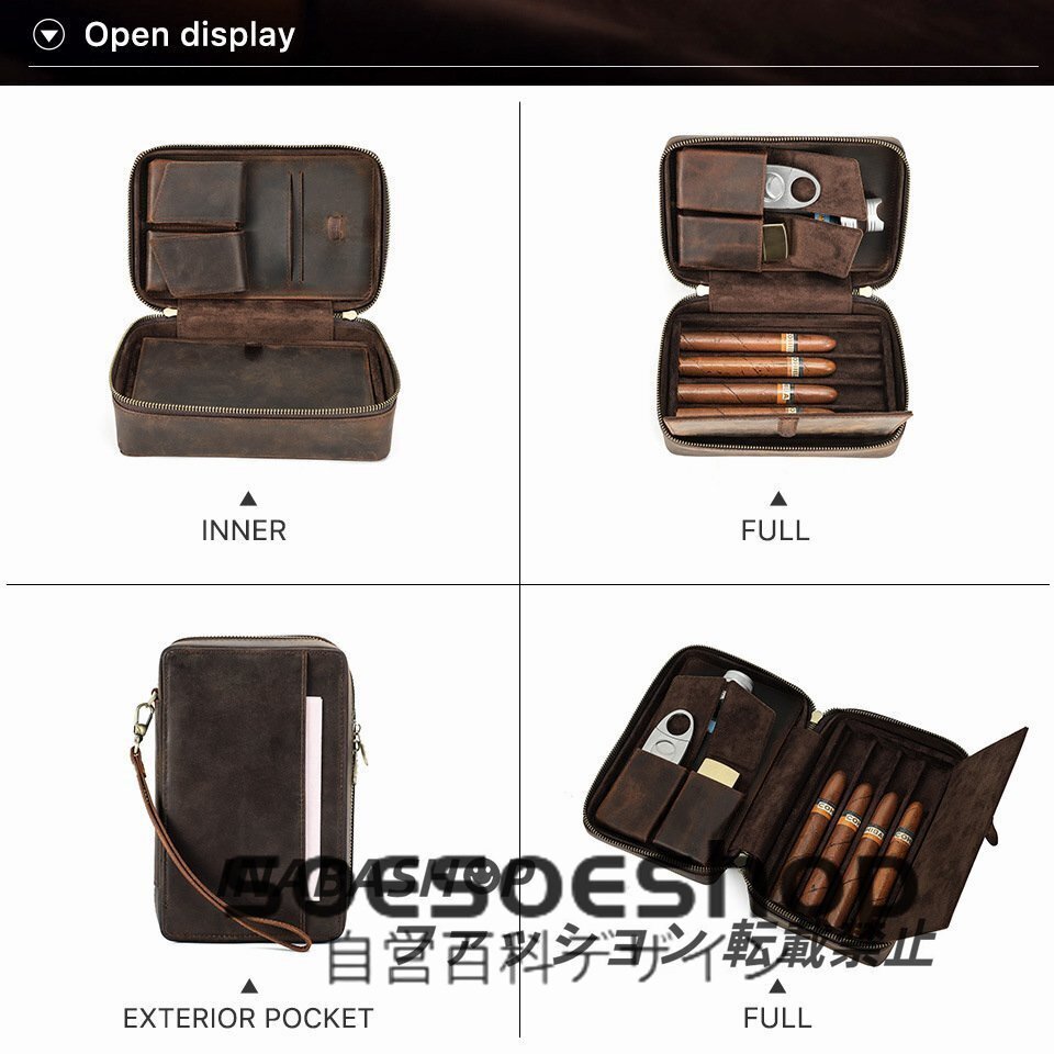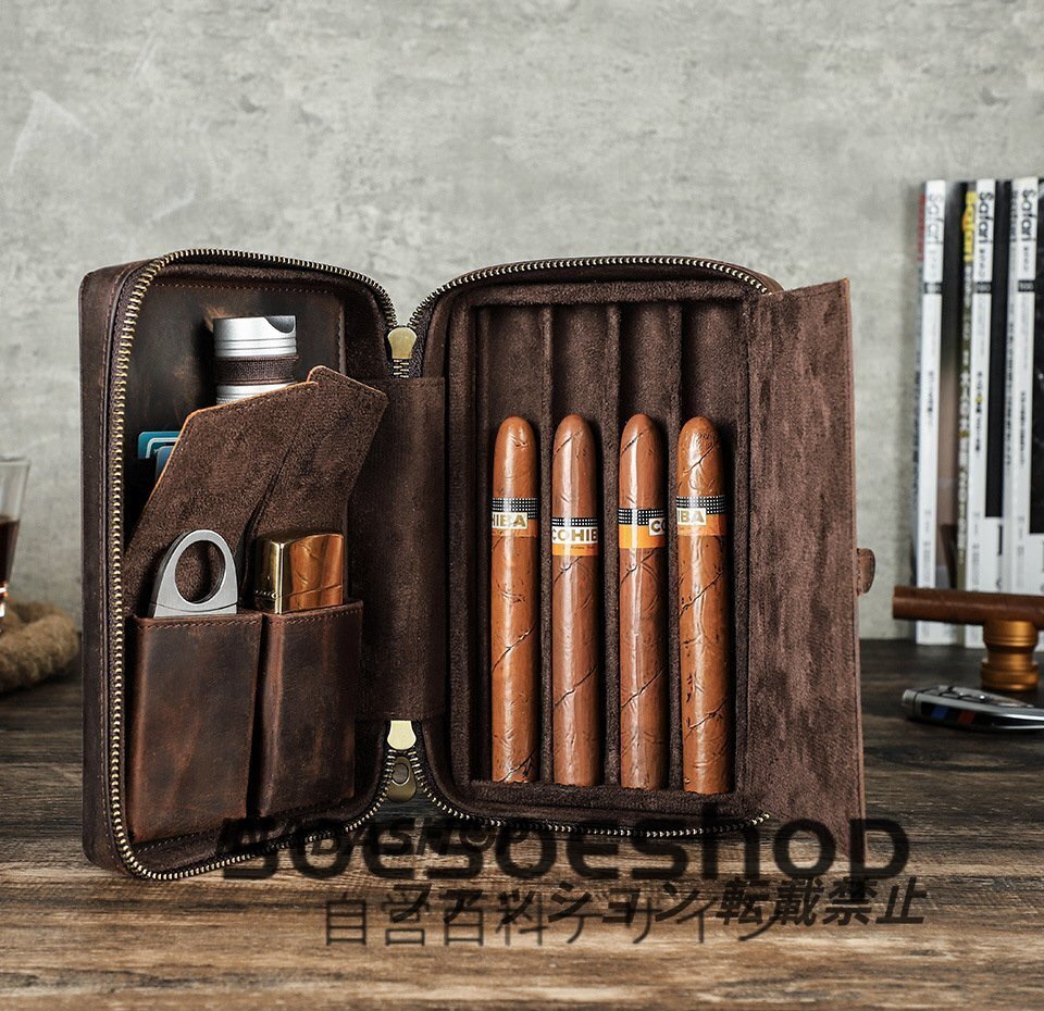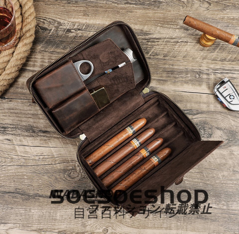 葉巻ケース シガーケース 保湿 携帯 喫煙器具 レザー 皮サック 4本用 本革製品 ポータブル 父の日 贈り物 プレゼント 本革ケース