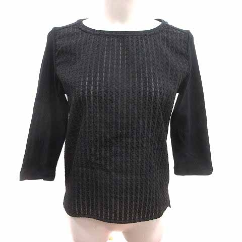 グリーンレーベルリラクシング ユナイテッドアローズ green label relaxing カットソー 切替 七分袖 黒 ブラック /YK レディース
