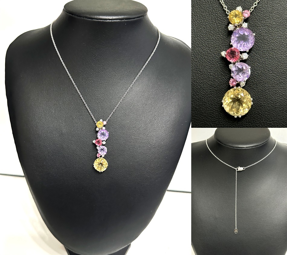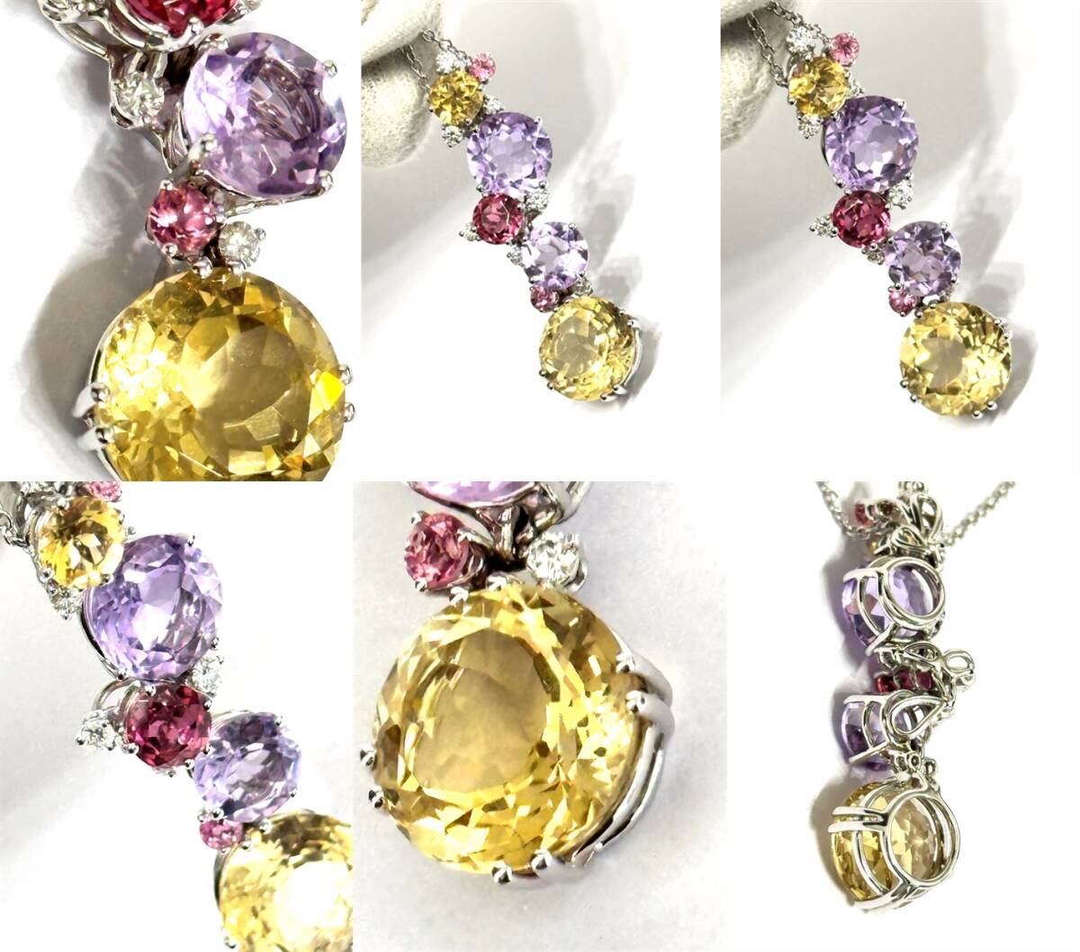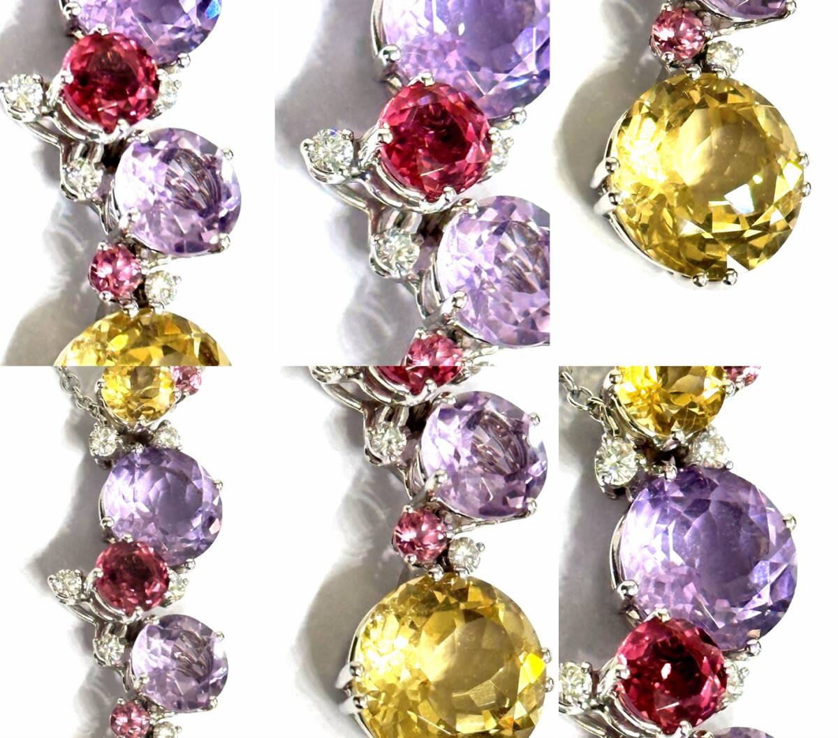 入手困難 レア 美品 DAMIANI ダミアーニ ラヴィアンローズ マルチ 大粒 ダイヤ シトリン アメジスト トルマリン ネックレス K18