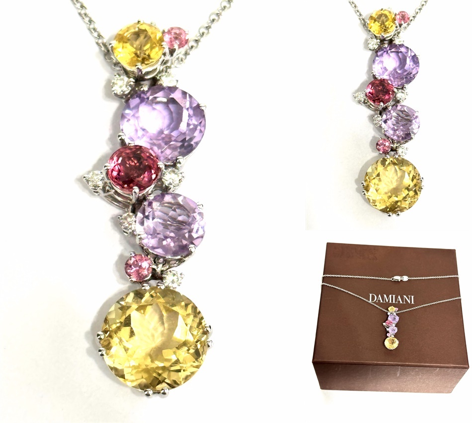 入手困難 レア 美品 希少 DAMIANI ダミアーニ ラヴィアンローズ マルチ ダイヤ シトリン アメジスト トルマリン 大粒 ネックレス K18 ケース付き